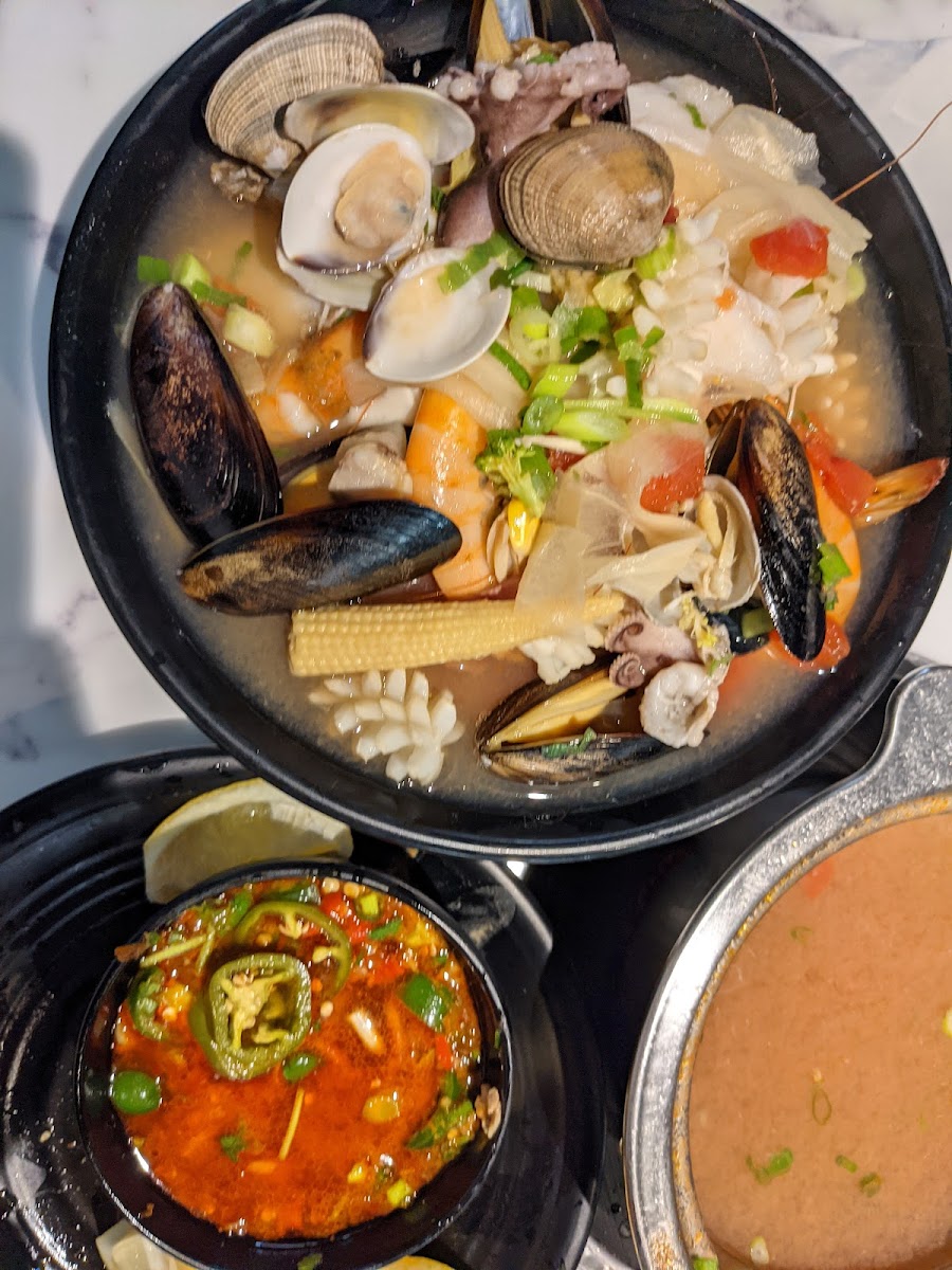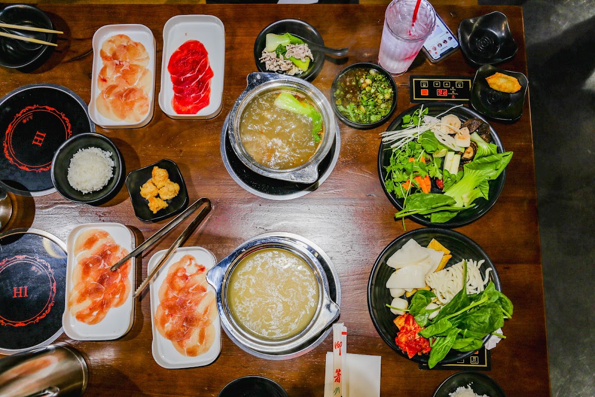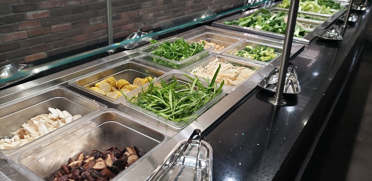 I remember the first time I had hot pot. It was nothing like this. Walking in the place is HUGE. The ceilings are high and the bar is beautifully lit as is the buffet. I love the self serve buffet style veggies, sauces, noodles etc. I can load up on enoki mushrooms and bok choy to my hearts content. All the bbq and ponzu and boiling world sauce to dip dip the premium meats in. When my and my patna' go we always get the same meats and just keep them coming. He likes the Pho broth and I like the Tonkotsu. They keep the broth coming so you're never running a dry pot. The service here is top tier. Someone coming to refill my drinks or soup, ask if we'd like another round of meat, yes. I like going during the week or early in the day so we don't get too much of a crowd. But even when they're busy we're never left unattended for too long. When we're sticking to a lower carb day this is the go to.